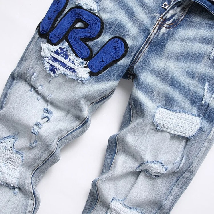 Home > Amiri Embroidered Distressed Ripped Stretch Jeans-4924
