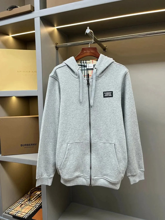 Burberry Solid Fitted Hooded Zip-Up Jacket-4343