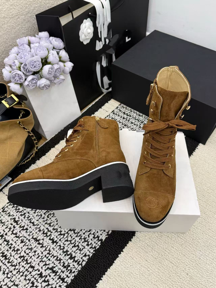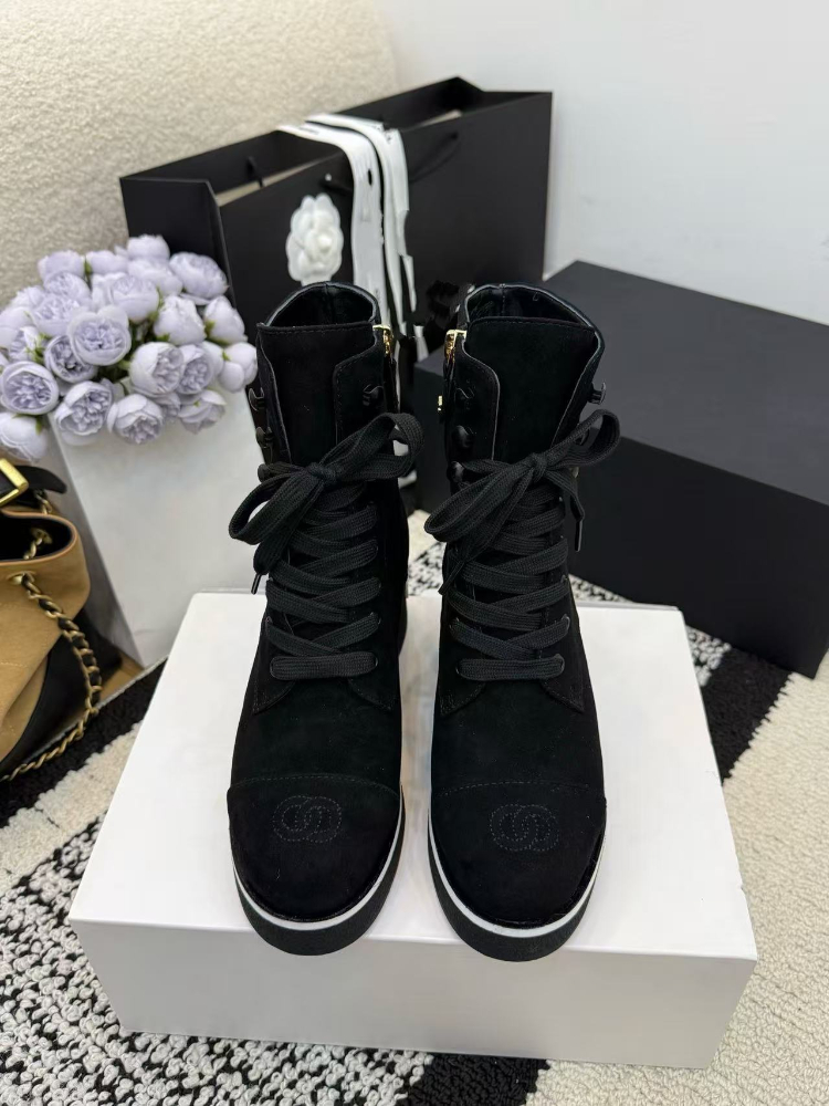 Home > Chanel platform color-block lace-up ankle boots-5774