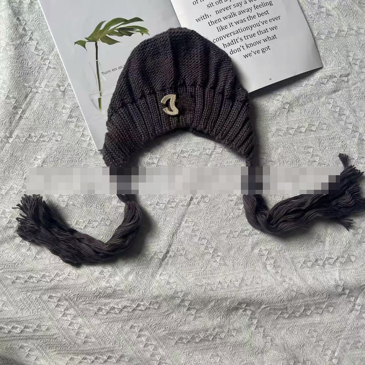 Chanel solid color vintage knitted hat with tassels-5856