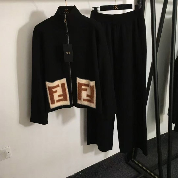 Home > Fendi new knitted set with zipper and F-logo pockets-5376