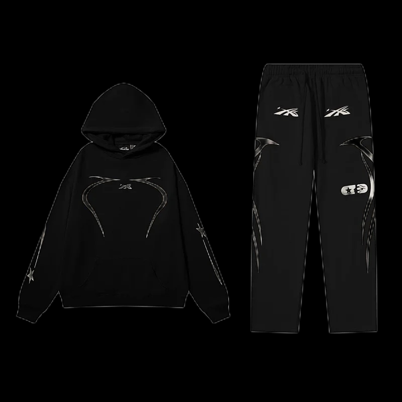 Hell Star Distressed Hoodie Set-0066