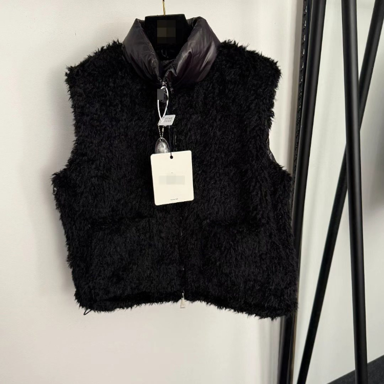 Moncler new down vest with stand-up collar and contrasting lambskin trim-5405