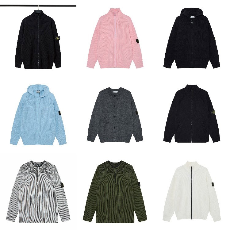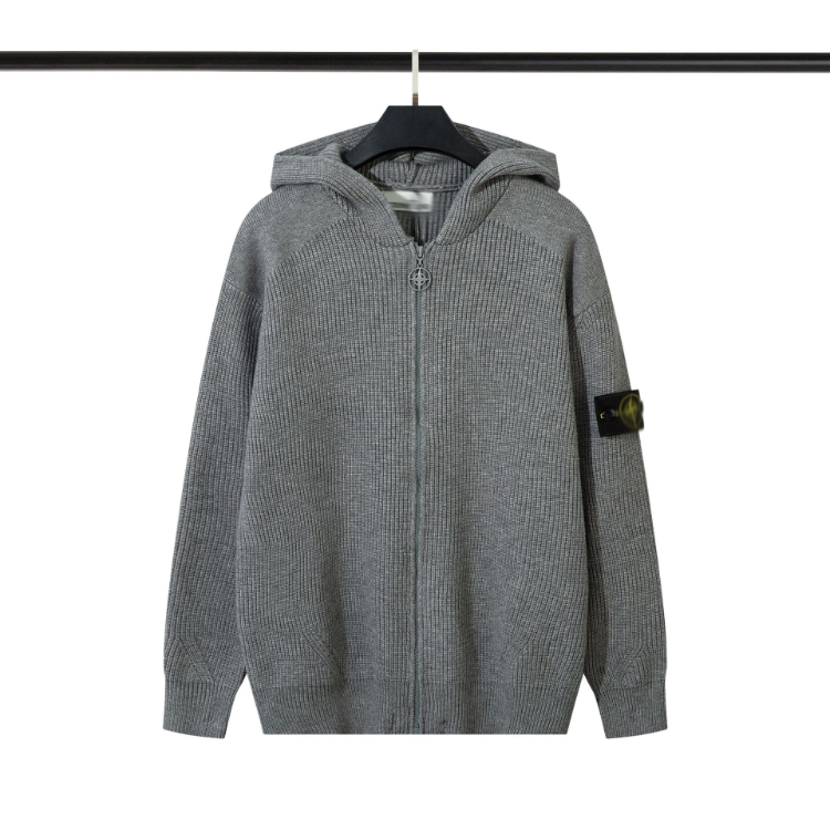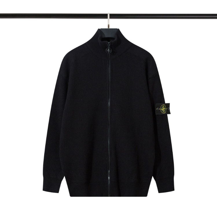 Stone Island cardigan sweater, solid color knitted long-sleeved zip-up jacket-5228