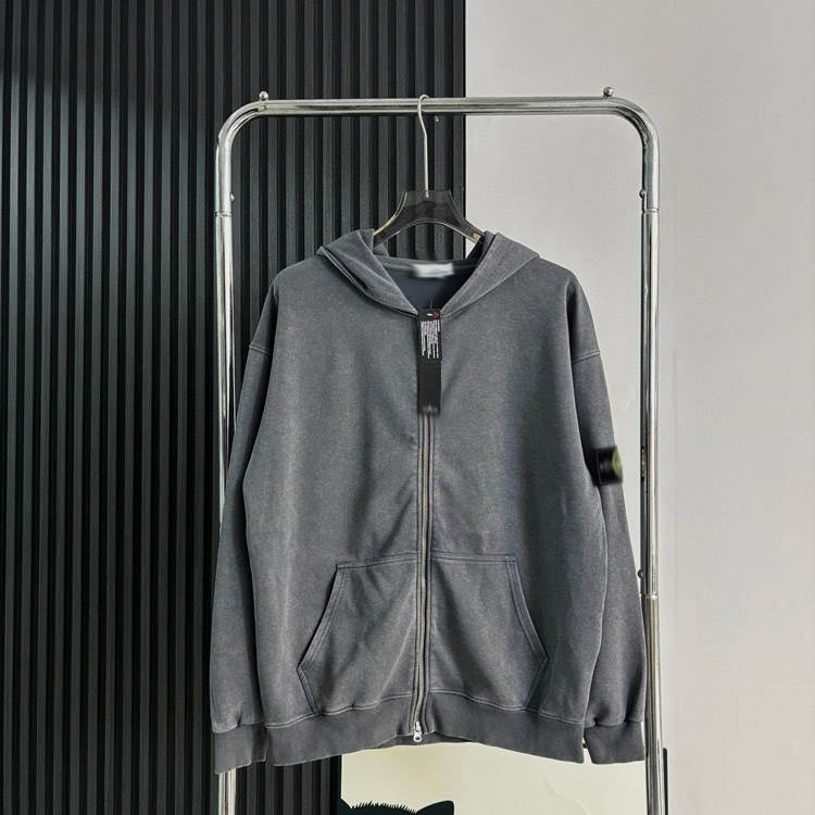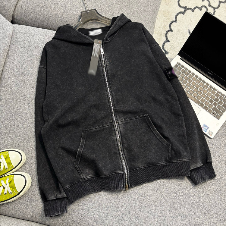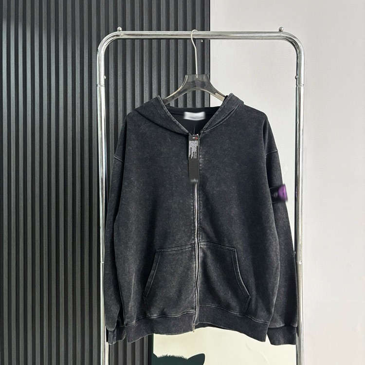 Stone Island washed and distressed zip-up hooded sweatshirt-5231
