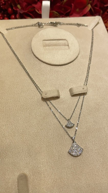 Home > Bulgari small fan full diamond white gold necklace-3896