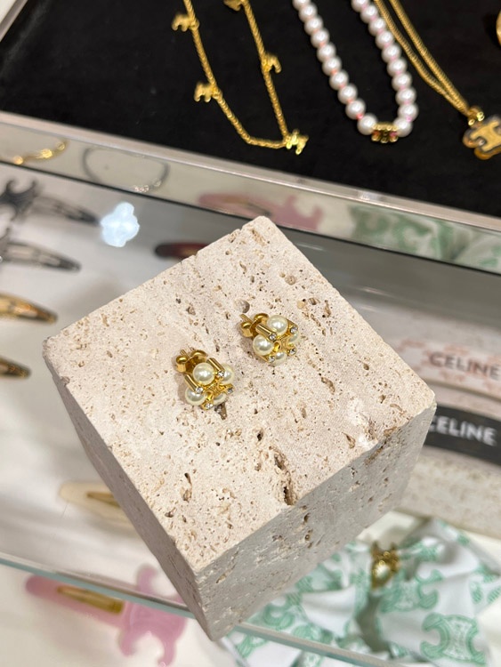 Home > Celine Pearl Gold Arc de Triomphe Earrings-3897