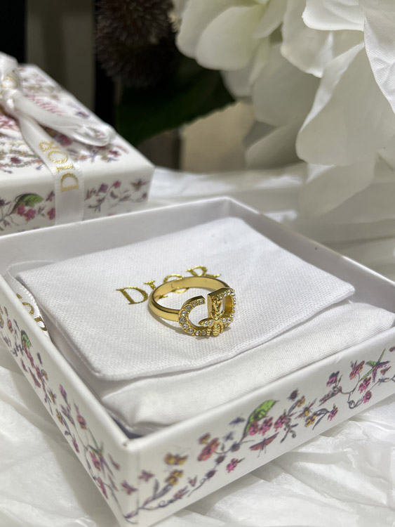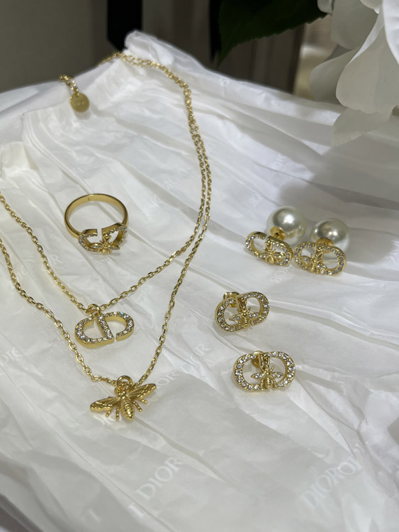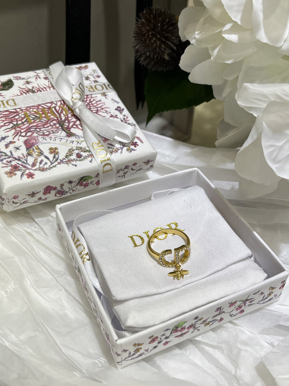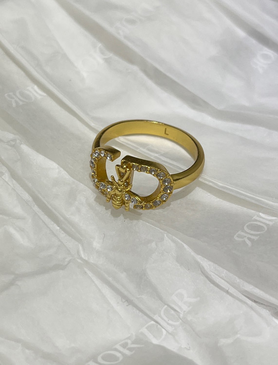 Dior gold full diamond bee pendant ring-3705