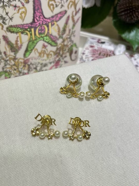 Dior gold star pearl double ball earrings-4017