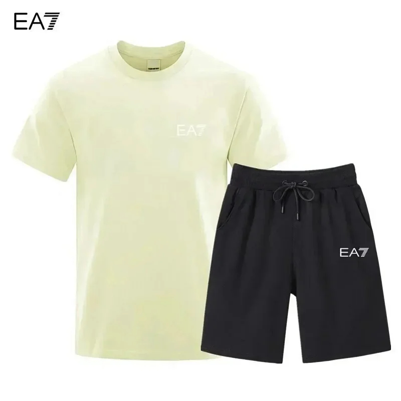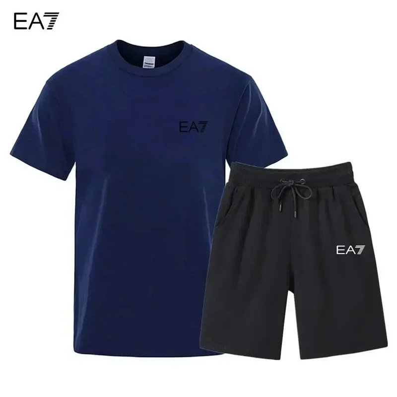 EMPORIO ARMANI EA7 Lettering Logo Round Neck Short Sleeve T-Shirt Shorts Set-2751