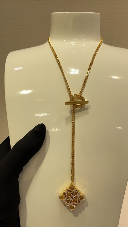 Loewe gold full diamond cube TO buckle necklace-3719