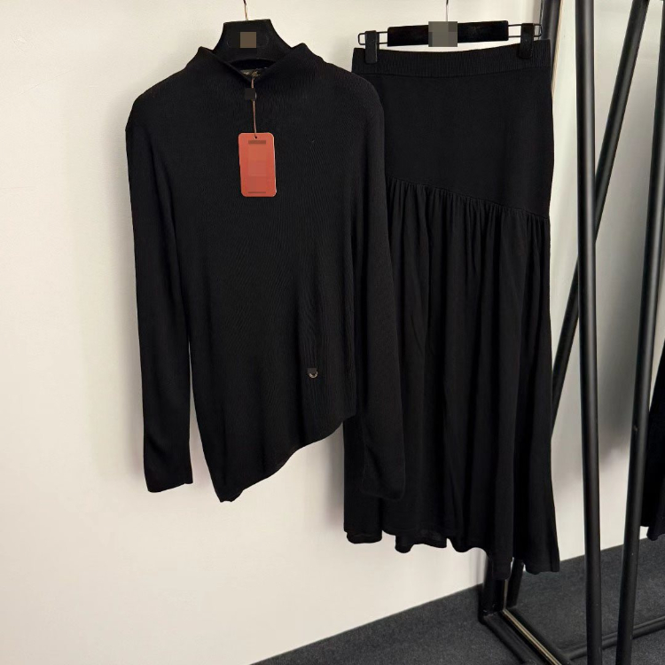 Loro Piana new wool knit set with irregular slanted hem-5384