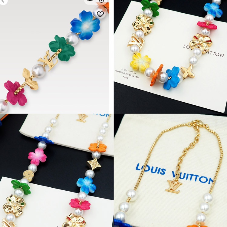 Louis Vuitton LV adjustable metal chain floral and glass beads floral necklace-3972