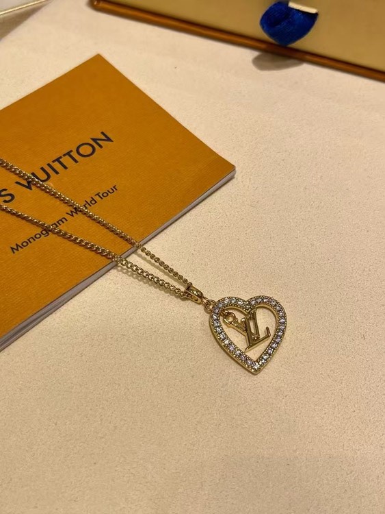 Louis Vuitton LV gold letter hollow diamond heart necklace-3725