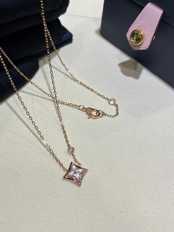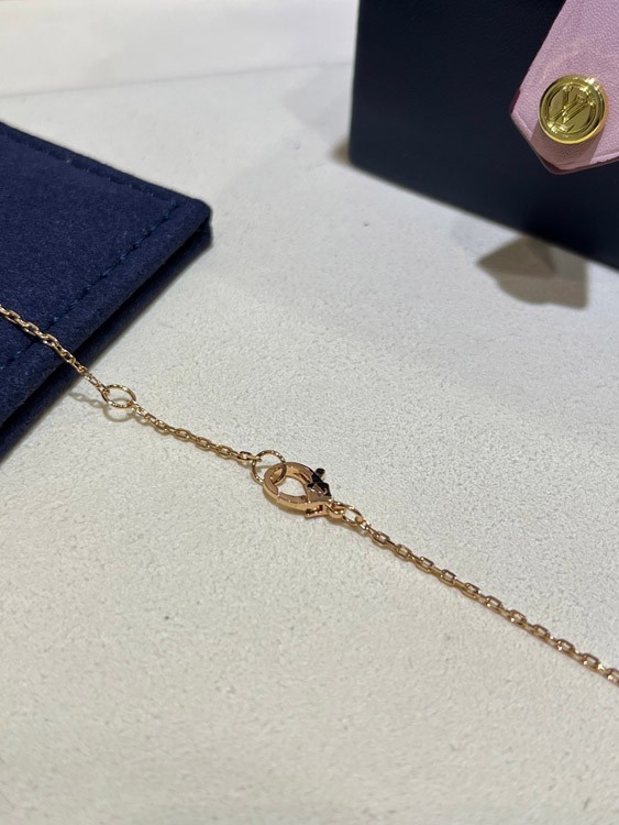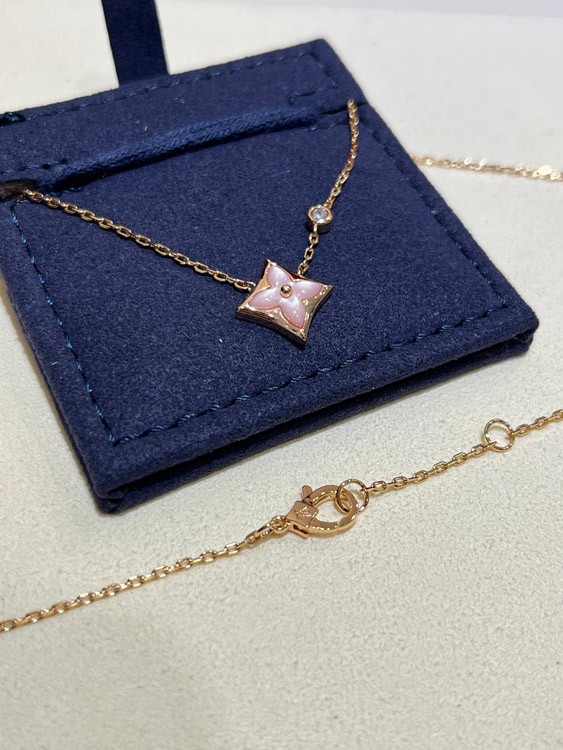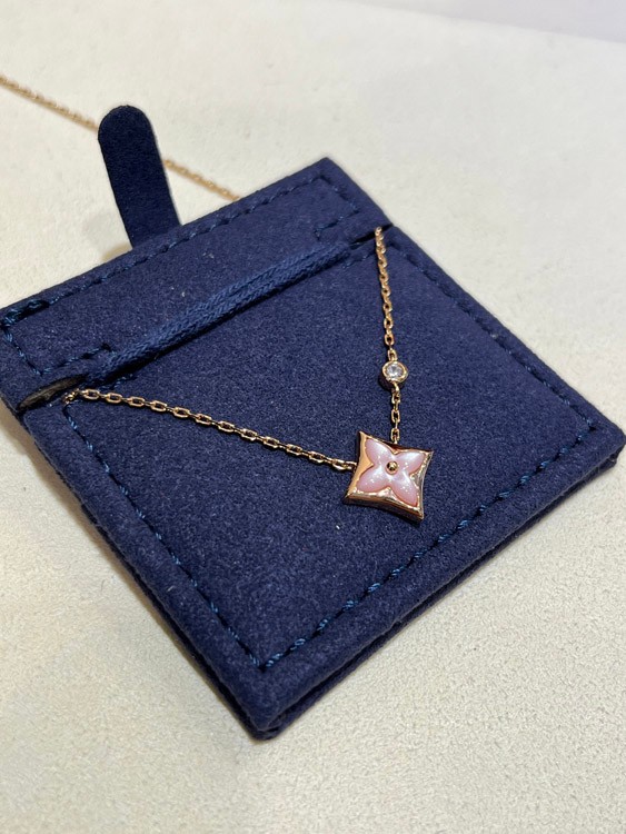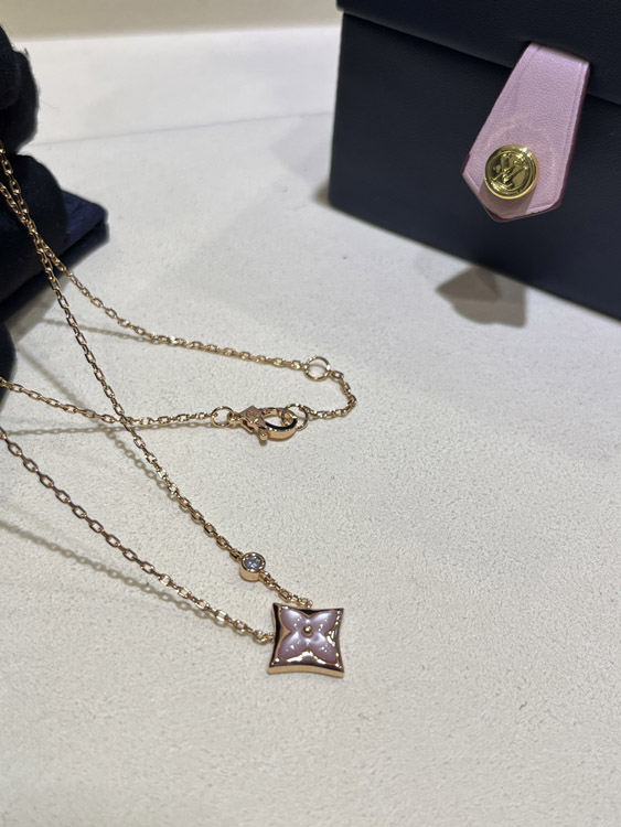 Louis Vuitton LV Pink Mother-of-Pearl Floral Diamond Rose Gold Necklace-3726