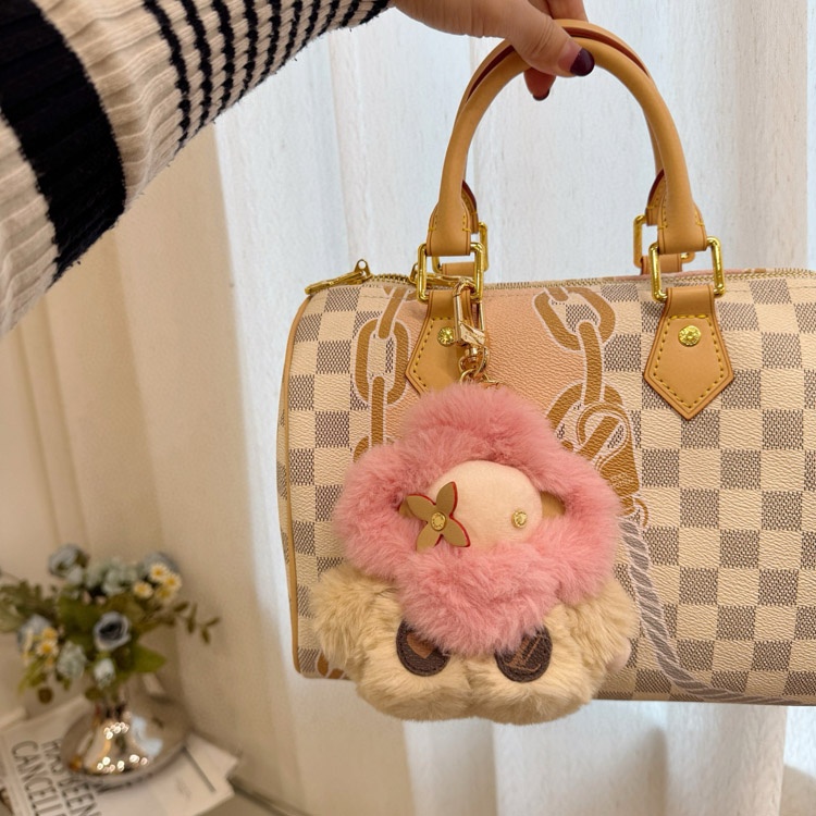 Louis Vuitton LV Small Sunflower Pink Plush Doll Keychain Pendant-3889