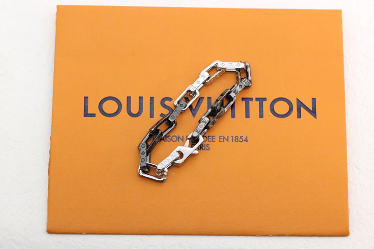 Louis Vuitton LV striped silver and black stitching tempered bamboo bracelet-3627