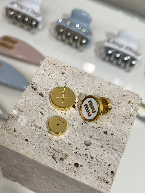 MIUMIU white enamel letter metal round button earrings-3892