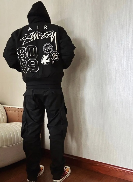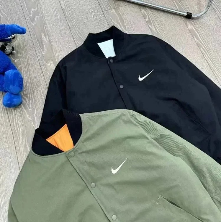 Nike x Stussy Collaboration Logo Embroidered Reversible Bomber Jacket-4815