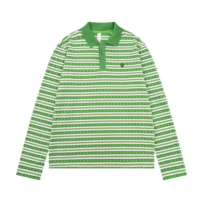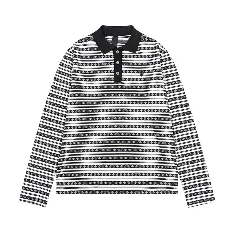 Polos Chrome Hearts CH New summer loose cross Sanskrit embroidered jacquard long-sleeved T-shirt-2517