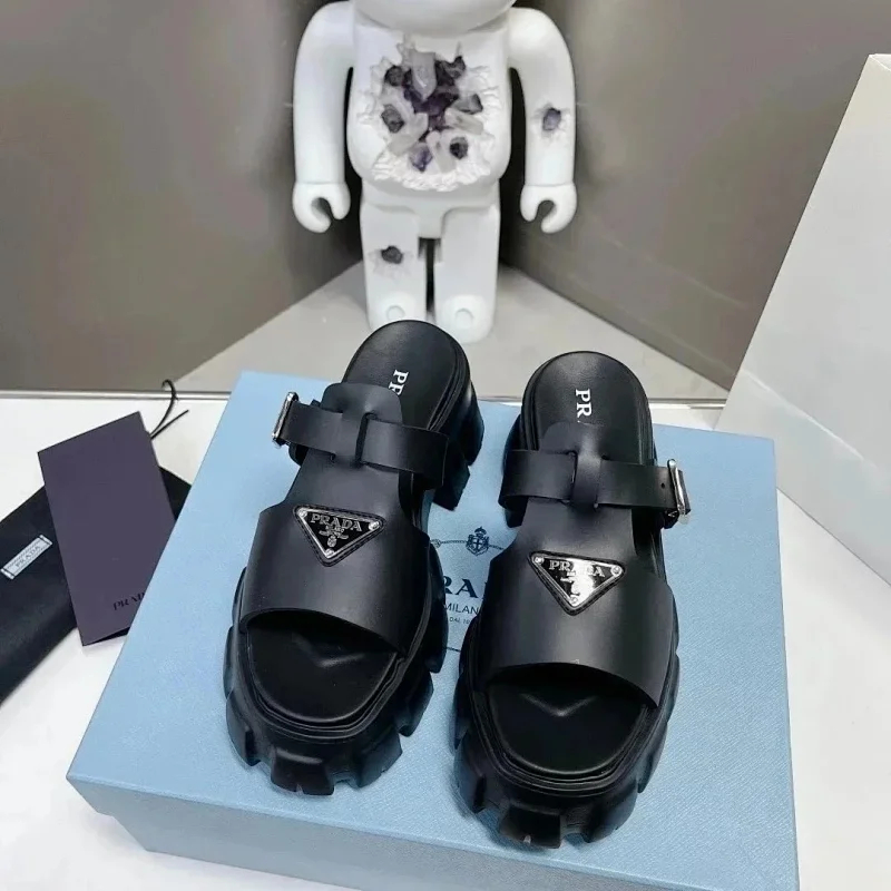 Prada's new thick-soled Roman woven European and American style height-enhancing sandals and slippers(40 styles)-2339