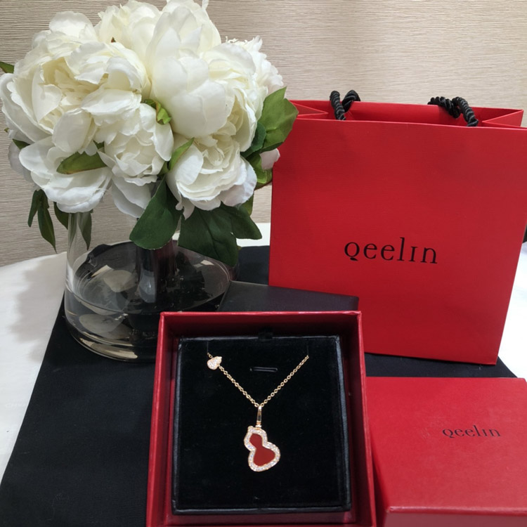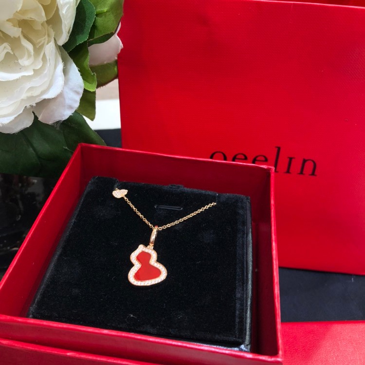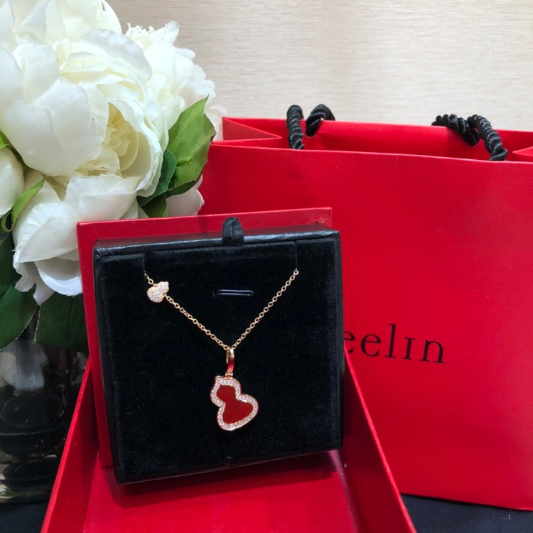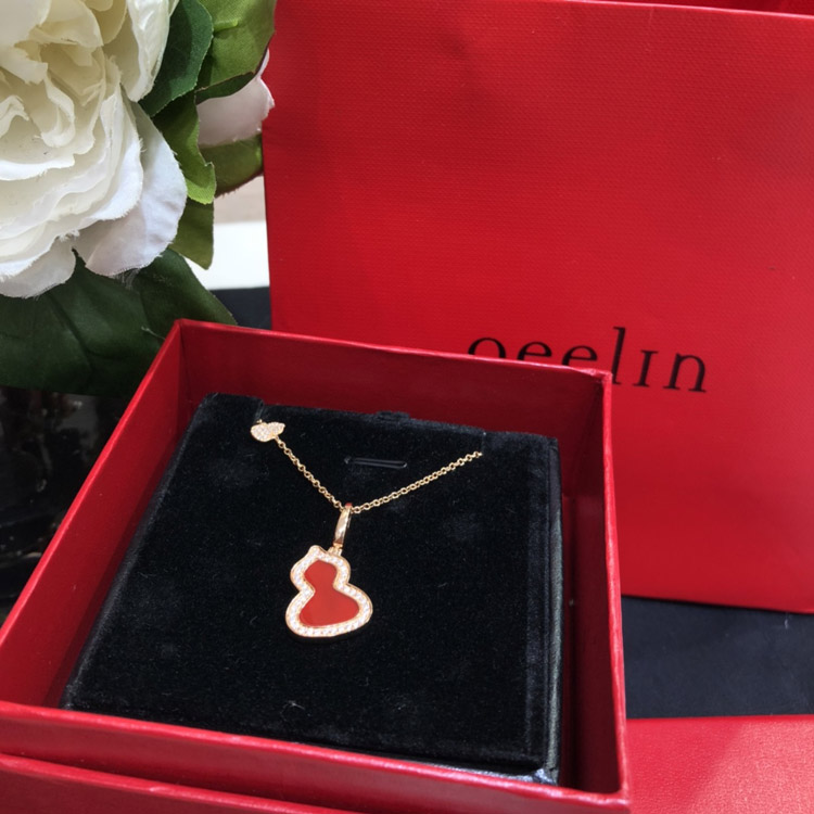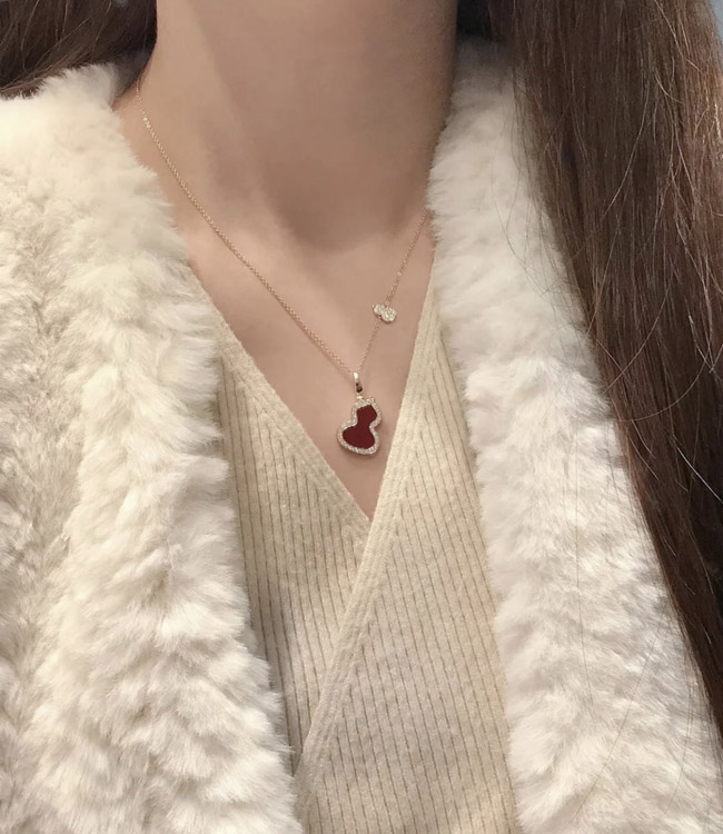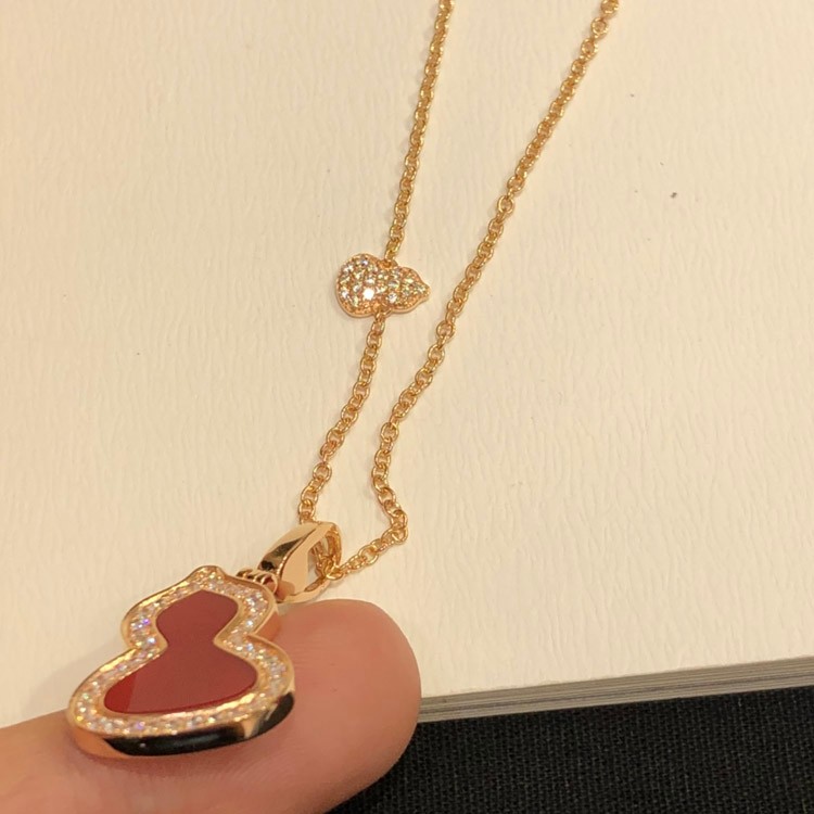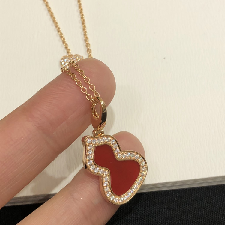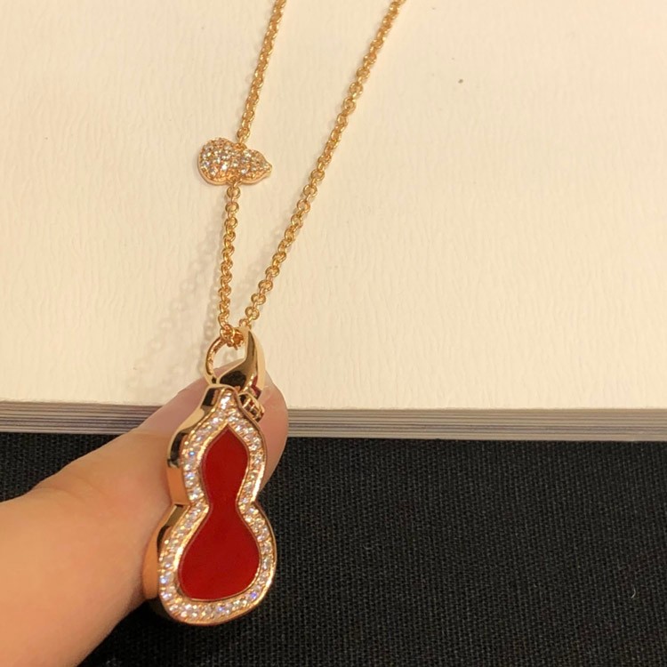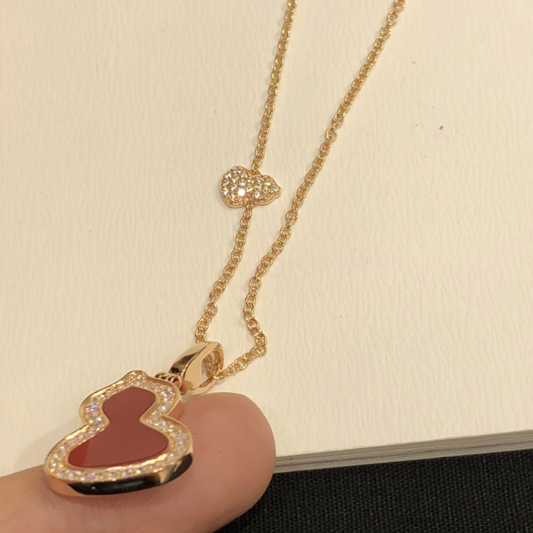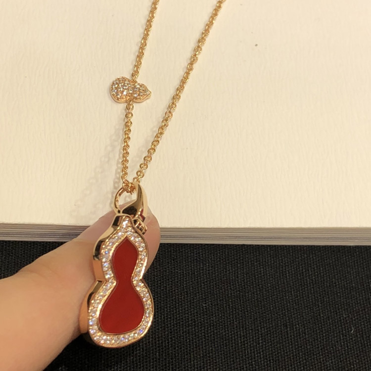 Home > Qeelin Diamond and red obsidian double gourd necklace-3884