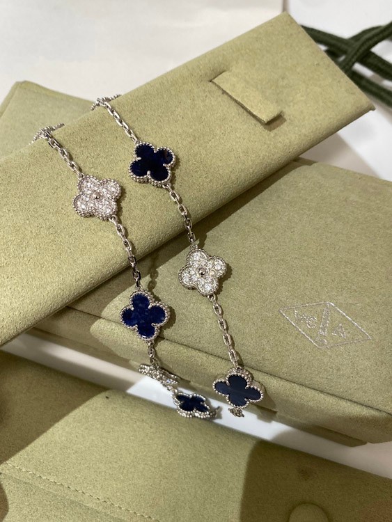 Van Cleef & Arpels white gold natural blue five-pattern stone diamond bracelet-3686